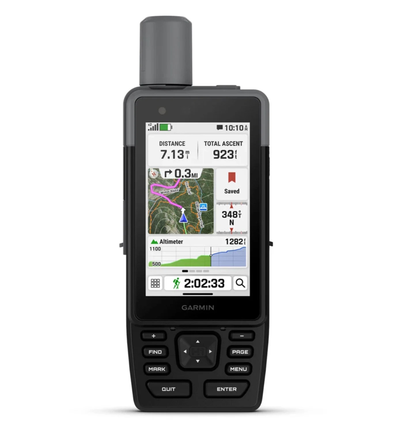 Com uma assinatura ativa do serviço de satélite inReach¹ , você pode facilmente permitir que amigos ou familiares acompanhem sua localização enquanto você estiver em movimento; não é necessário apontar seu dispositivo diretamente para o céu para encontrar satélites. Eles podem ver seu progresso, incluindo distância, tempo e altitude.